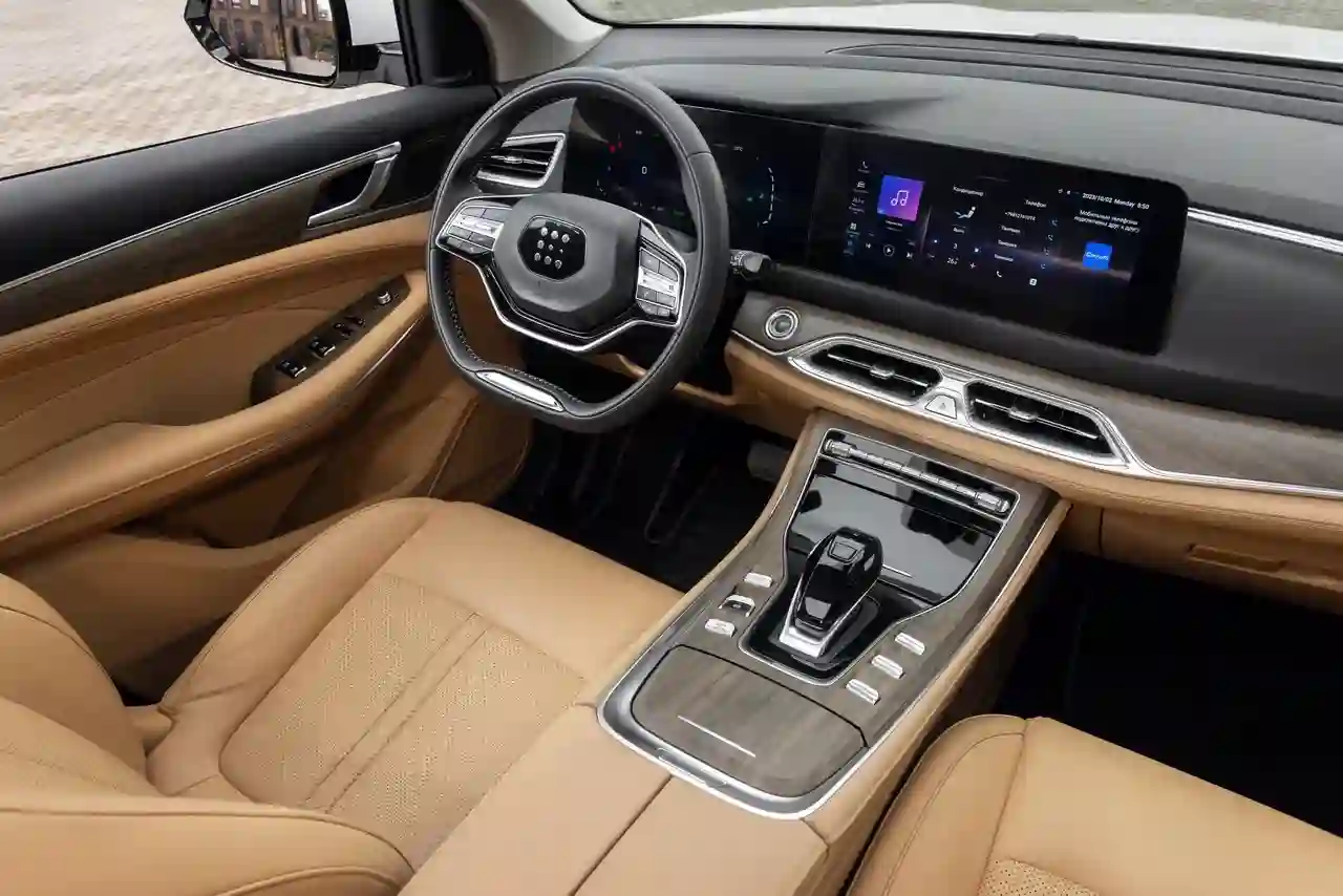 Воздушную насыщенность салона усиливают огромная панорамная крыша площадью 1,14м2 со сдвижной секцией и грамотная эргономика, в которой найти своей место не составит труда ни водителю, ни пассажирам вплоть до третьего ряда.