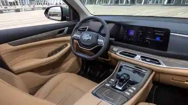 Интерьер — с претензией на премиум, придраться можно разве что к экокоже на сиденьях вместо натуральной. Водительское кресло с электрорегулировками и хорошей боковой поддержкой — самое удобное. Посередине передней панели здоровенный экран-планшет, с которого можно управлять всеми функциями, даже направлением воздушных потоков — заслонки воздуховодов здесь электрифицированы.